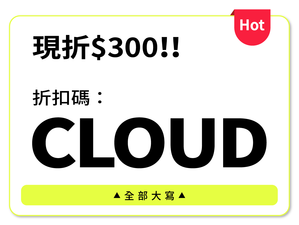限時折扣碼:CLOUD